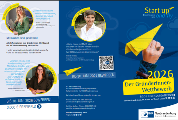 The competition puts the spotlight on female entrepreneurs belonging to the Chamber of Industry and Commerce (IHK) from the districts of Mecklenburgische Seenplatte and Vorpommern-Greifswald.