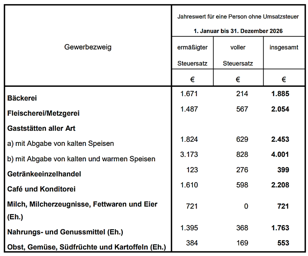 Bei gemischten Betrieben (Fleischerei/Metzgerei oder Bäckerei mit Lebensmittelangebot oder Gaststätten) ist nur der jeweils höhere Pauschbetrag der entsprechenden Gewerbeklasse anzusetzen.