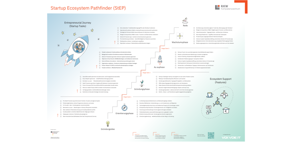 Genau hier setzt der Startup Ecosystem Pathfinder (StEP) an – entwickelt vom RKW Kompetenzzentrum in Kooperation mit der VDI/VDE Innovation + Technik GmbH.