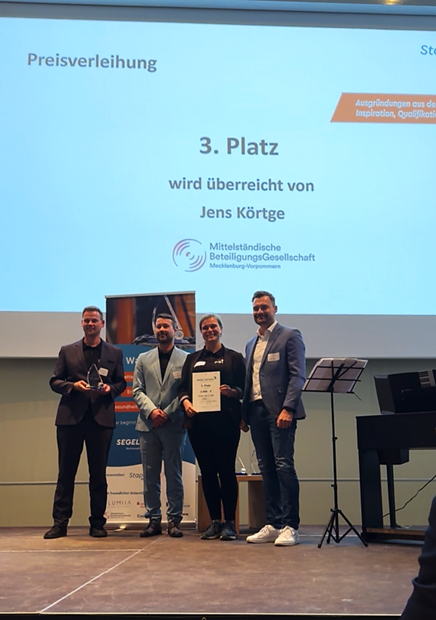 Foto vom Gewinnerpreis beim Businessplanwettbewerb „SEGEL SETZEN!“